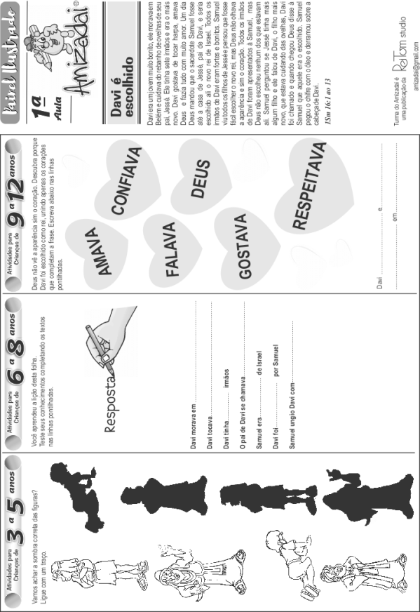 cartolina para ministrar a aula, mostrando a figura e contando a passagem bíblica.
