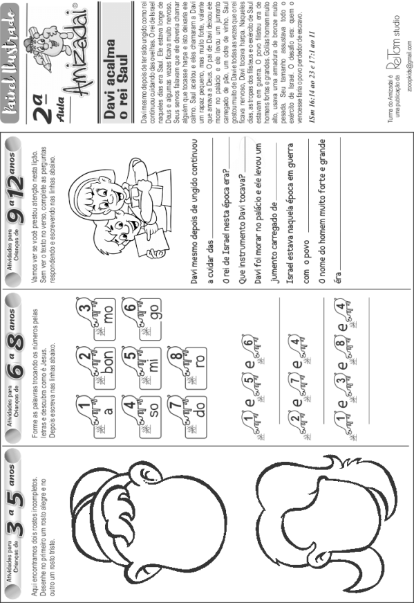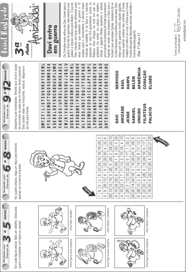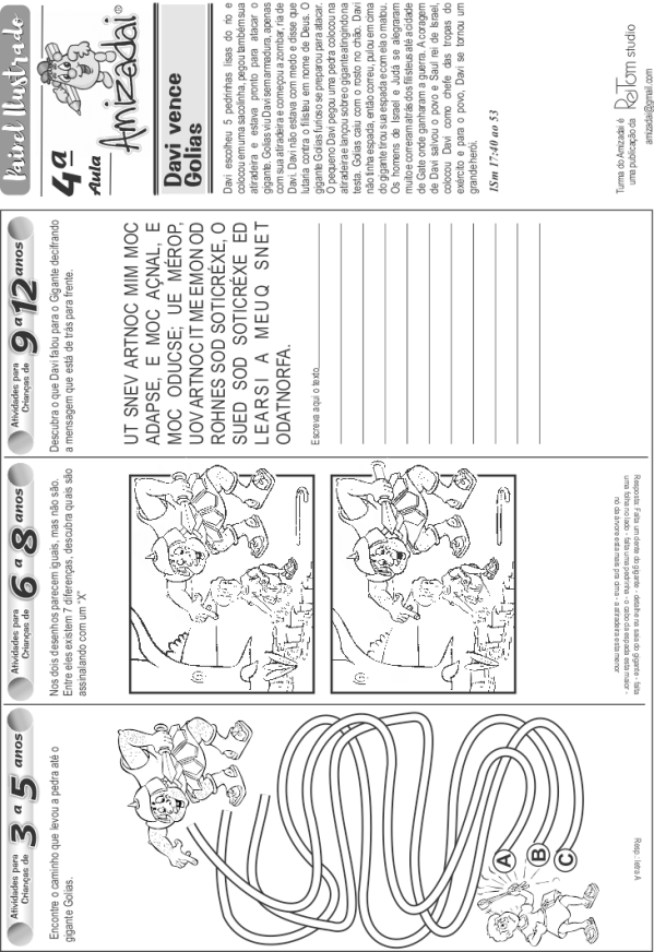 No verso, ele realiza as atividades de acordo com a faixa etária indicada.