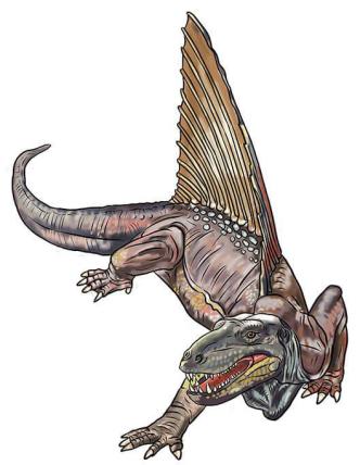 O dimetrodon do grego (‘’duas medidas de dentes’’), foi um réptil que viveu no período Permiano, de 280 - 250 milhões de anos atrás, nas vegetações que hoje pertencem a América do Norte e Europa. Foram encontrados fósseis nos Estados Unidos e Alemanha. Existiam 14 Espécies de dimetrodon. O dimetrodon não pode ser considerado como um dinossauro, ele faz parte de um grupo de répteis chamados pelicossáurios, que viveram antes dos dinossauros. Foi confundido como dinossauro, mas a espécie se extinguiu a 40 milhões de anos. Chegava a pesar, quando adulto, 250kg. Foi um dos maiores predadores de sua época, chegava a mais de 4 m de comprimento, dependendo da espécie. Se alimentava de peixes, répteis, anfíbios e insetos. Nas costas sustentava uma vela óssea que pode ter sido usada para exibição, em rituais de acasalamento, ou ainda para avisar o aparecimento outros predadores.